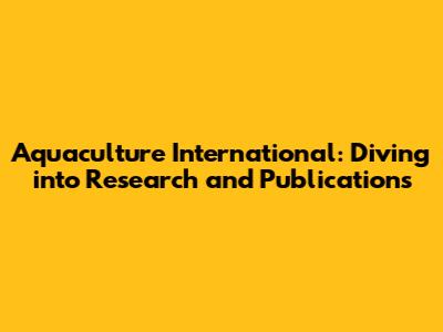 Aquaculture International: Research & Publications