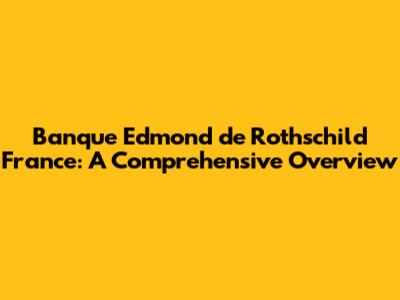 Banque Edmond De Rothschild France: A Comprehensive Overview