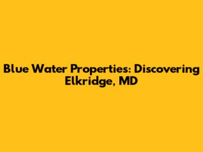 Hey there, real estate enthusiasts! Let's dive into the world of Blue Water Properties in the charming town of Elkridge, Maryland. Whether you're a first-time homebuyer, a seasoned investor, or someone just curious about the local market, Elkridge has a lot to offer. We'll explore everything from the appeal of Blue Water properties themselves, to the amazing lifestyle and community that Elkridge provides. So, grab a coffee (or your favorite beverage), settle in, and let's unravel the secrets of finding your dream home in this amazing area.