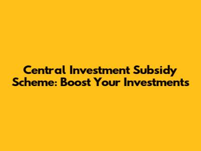 Central Investment Subsidy Scheme: Boost Your Investments