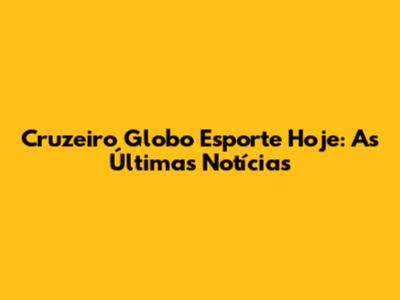 E aí, galera apaixonada por futebol! Se você, assim como eu, está sempre de olho no que rola com o nosso Cruzeiro, e quer saber as últimas novidades do Globo Esporte hoje, chegou no lugar certo! Vamos mergulhar fundo nas informações mais quentes, análises, entrevistas e tudo mais que envolve o nosso Cabuloso. Fique ligado para não perder nenhum detalhe, porque aqui a informação é certeira e o amor pela Raposa é incondicional.
