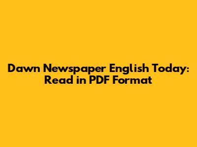 Dawn Newspaper English Today: Read In PDF Format