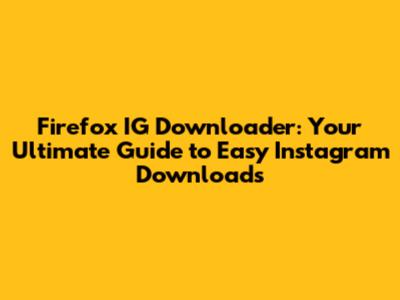 Firefox IG Downloader: Your Guide To Easy Instagram Downloads