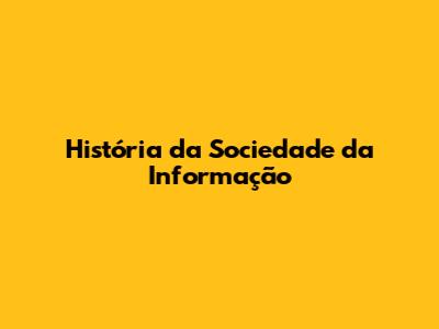 História Da Sociedade Da Informação: Passado E Presente