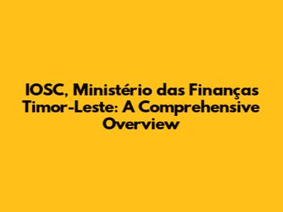 IOSC, Ministério Das Finanças Timor-Leste: A Comprehensive Overview