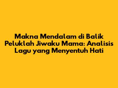 'Peluklah Jiwaku Mama' – judul lagu yang sederhana namun sarat makna. Lagu ini telah berhasil menyentuh hati banyak pendengar, terutama mereka yang memiliki hubungan erat dengan sosok ibu. Melalui lirik yang puitis dan melodi yang indah, lagu ini mengajak kita untuk merenungkan kembali arti kasih sayang seorang ibu, pengorbanannya, dan betapa pentingnya kehadiran seorang ibu dalam hidup kita. Artikel ini akan mengupas tuntas makna yang terkandung dalam lagu ini, mulai dari lirik, melodi, hingga dampaknya bagi pendengar.