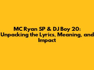 MC Ryan SP & DJ Boy 20: Lyrics, Meaning & More