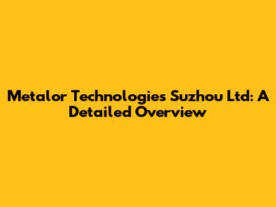 Metalor Technologies Suzhou: A Detailed Overview