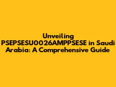 Hey guys! Ever heard of PSEPSESU0026AMPPSESE? If not, no worries! We're diving deep into what it is and its significance, particularly within the bustling landscape of Saudi Arabia. This isn't just a technical jargon dump; we're breaking it down in a way that's easy to understand, even if you're new to the topic. So, buckle up, because we're about to embark on a journey of discovery! We will explore its role, impact, and everything in between. The aim is to equip you with all the knowledge you need, whether you are a business person, a student, or just a curious individual. We'll cover the essentials, ensuring you grasp the core concepts without feeling overwhelmed by complex terminology. Let's make this exploration both informative and engaging, shall we?